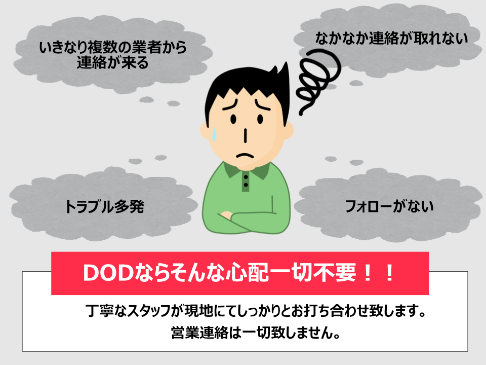 現地訪問やお打ち合わせの際には営業スタッフが対応させていただき、気軽にご相談できる環境づくりを心がけております。万が一他社よりも高い場合はお気軽にご相談ください。
