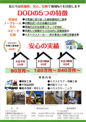 茨城県内での解体工事の際は安い、安心、安全のDODにお任せください。