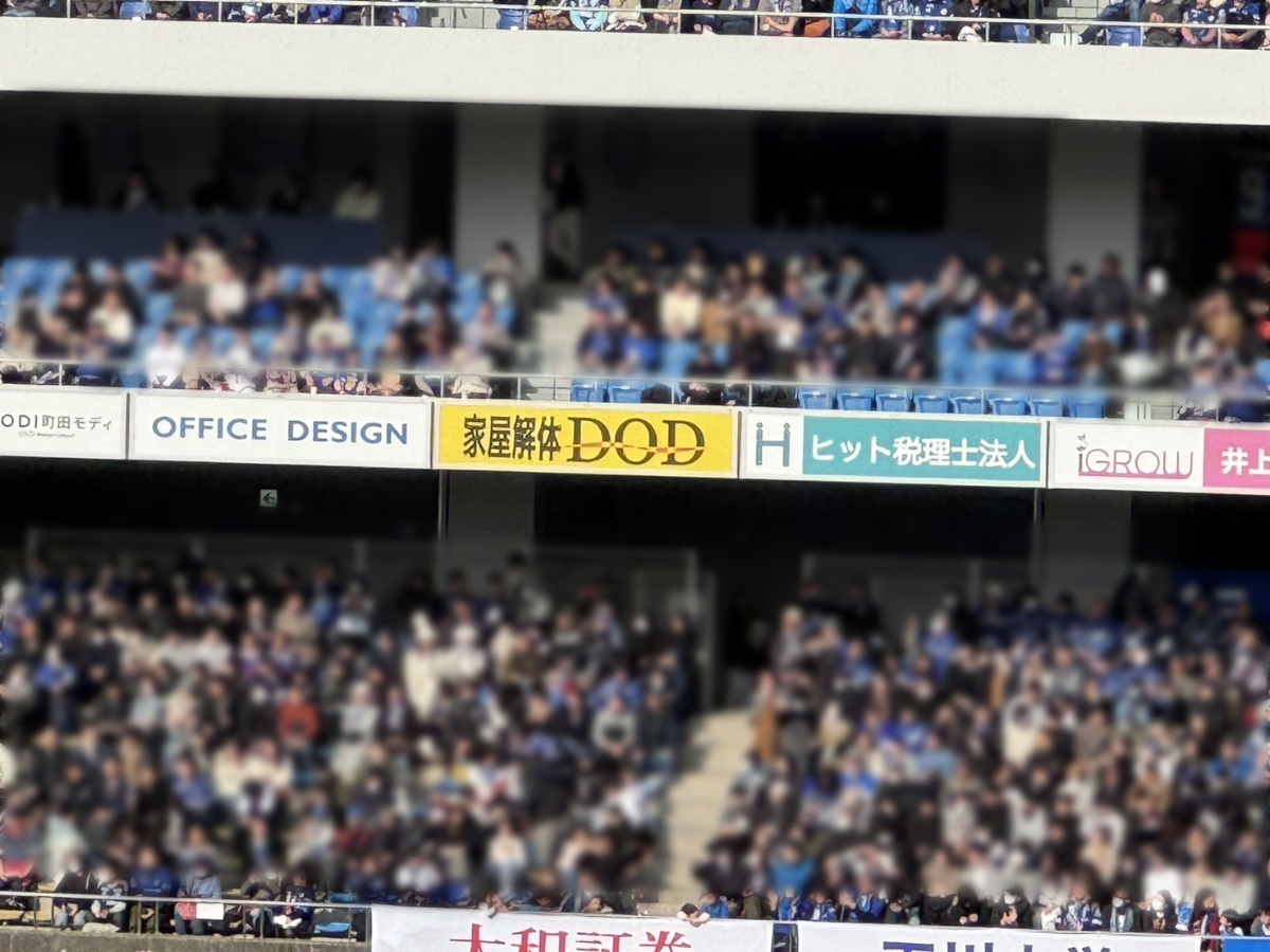 FC町田ゼルビアのホームスタジアム町田GIONスタジアムのバックスタンドに看板広告を掲載しています。