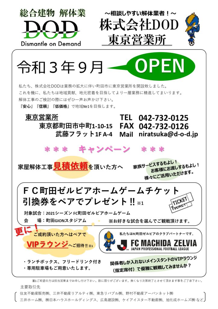 私たち株式会社DODはFC町田ゼルビアを応援しています。